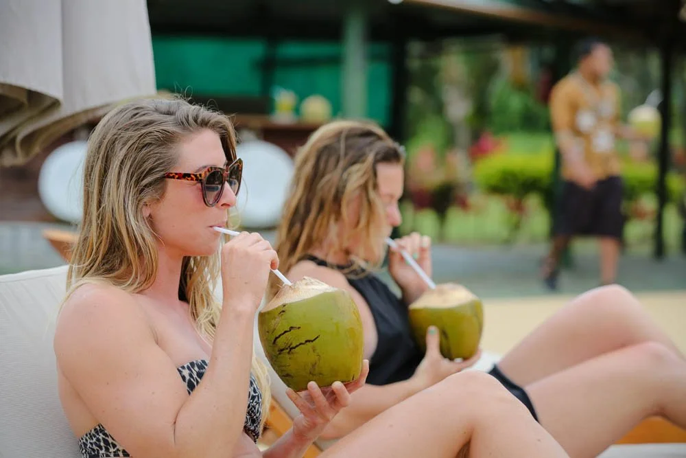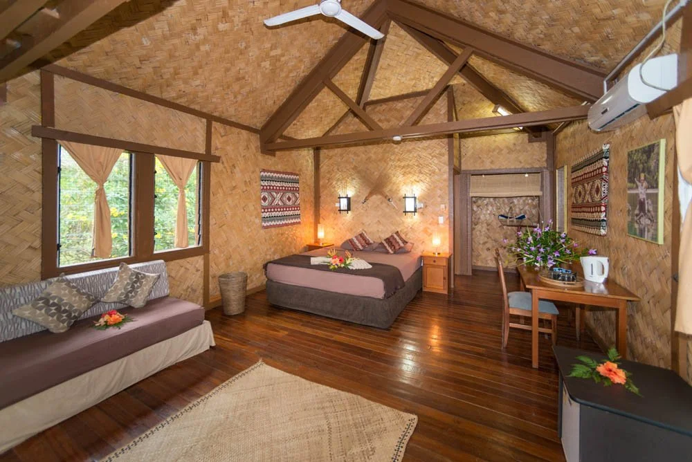 We’ll be staying at the stunning Waidroka Bay Resort — an authentic Fijian boutique oceanfront escape surrounded by lush tropical greenery and crystal-clear water. Picture beachfront views, open-air living spaces, hammocks swaying beneath palm trees, warm island hospitality, and a relaxed atmosphere that captures the true spirit of Fiji. This isn’t a large, packaged resort experience; it’s intimate, immersive, and beautifully real. Even more special, the entire resort will be exclusively ours, creating a private sanctuary where you can fully unwind and feel completely at home.
