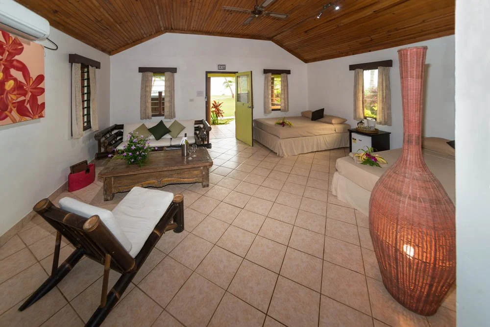 Each room blends comfort with relaxed island charm, surrounded by tropical gardens or ocean views.